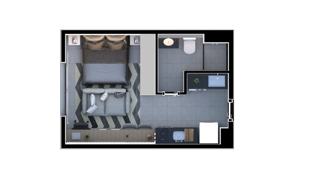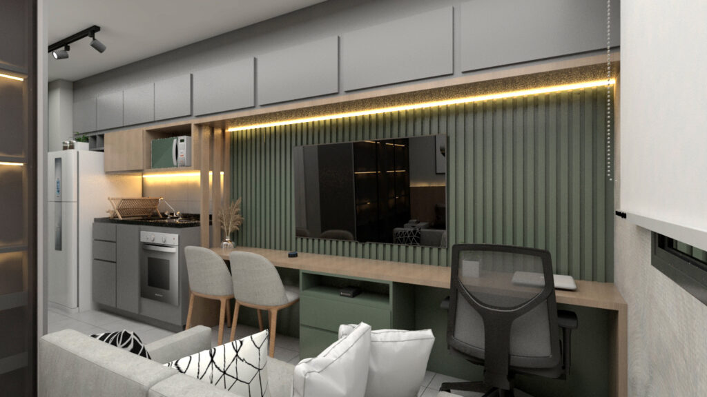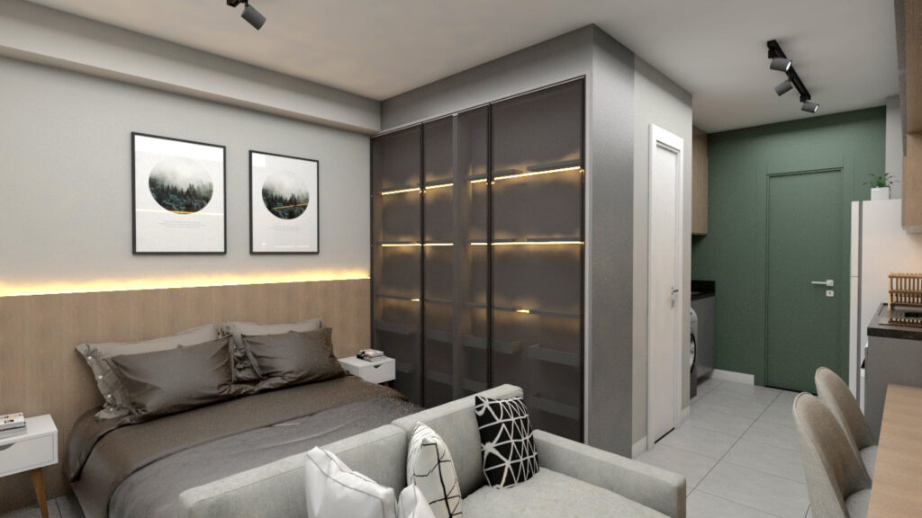 Apartamento studio bem desenvolvido , armários com reflecta, painel amplo de